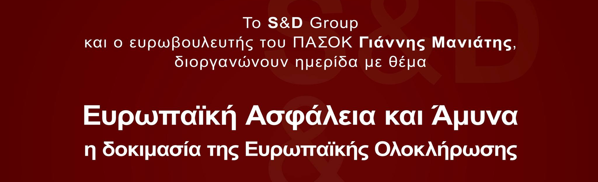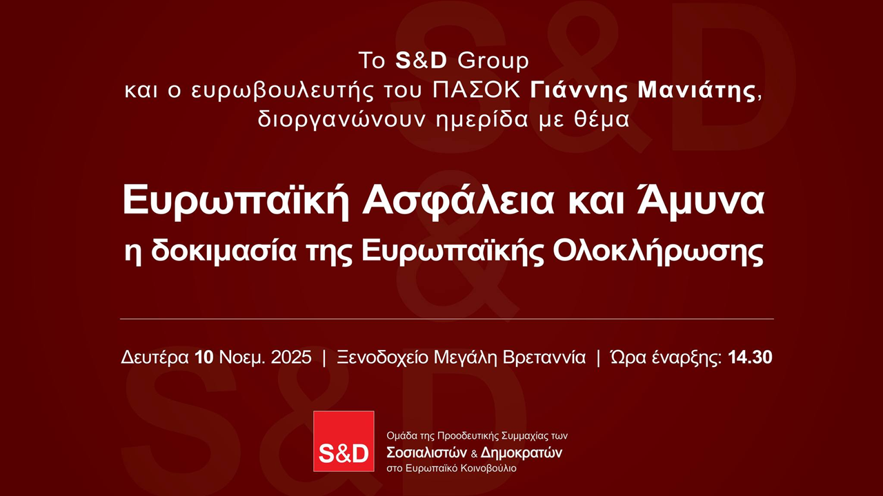 Το S&D Group και ο ευρωβουλευτής του ΠΑΣΟΚ Γιάννης Μανιάτης, διοργανώνουν ημερίδα με θέμα : «Ευρωπαϊκή Ασφάλεια και Άμυνα Η δοκιμασία της Ευρωπαϊκής Ολοκλήρωσης»