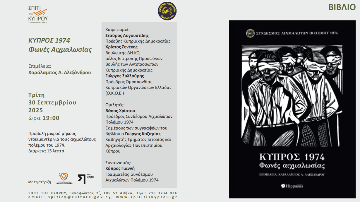 Συντονισμός: Κύπρος Γιαννή, Γραμματέας Συνδέσμου Αιχμαλώτων Πολέμου 1974